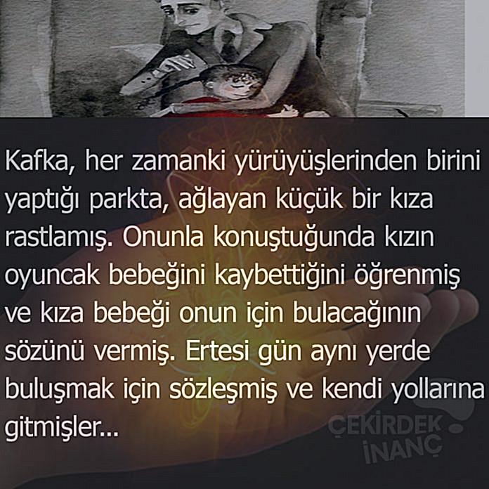 Aradan aylar geçmiş, son görüşmeleri gelip çatmış. Kafka kıza bir oyuncak bebek vermiş. Kız bu bebeğin kendi bebeğinden oldukça farklı olması karşısında şaşkınlıkla bakakalmış. Kafka’nın bebeğe iliştirdiği not, kızın şaşkınlığını gidermiş: